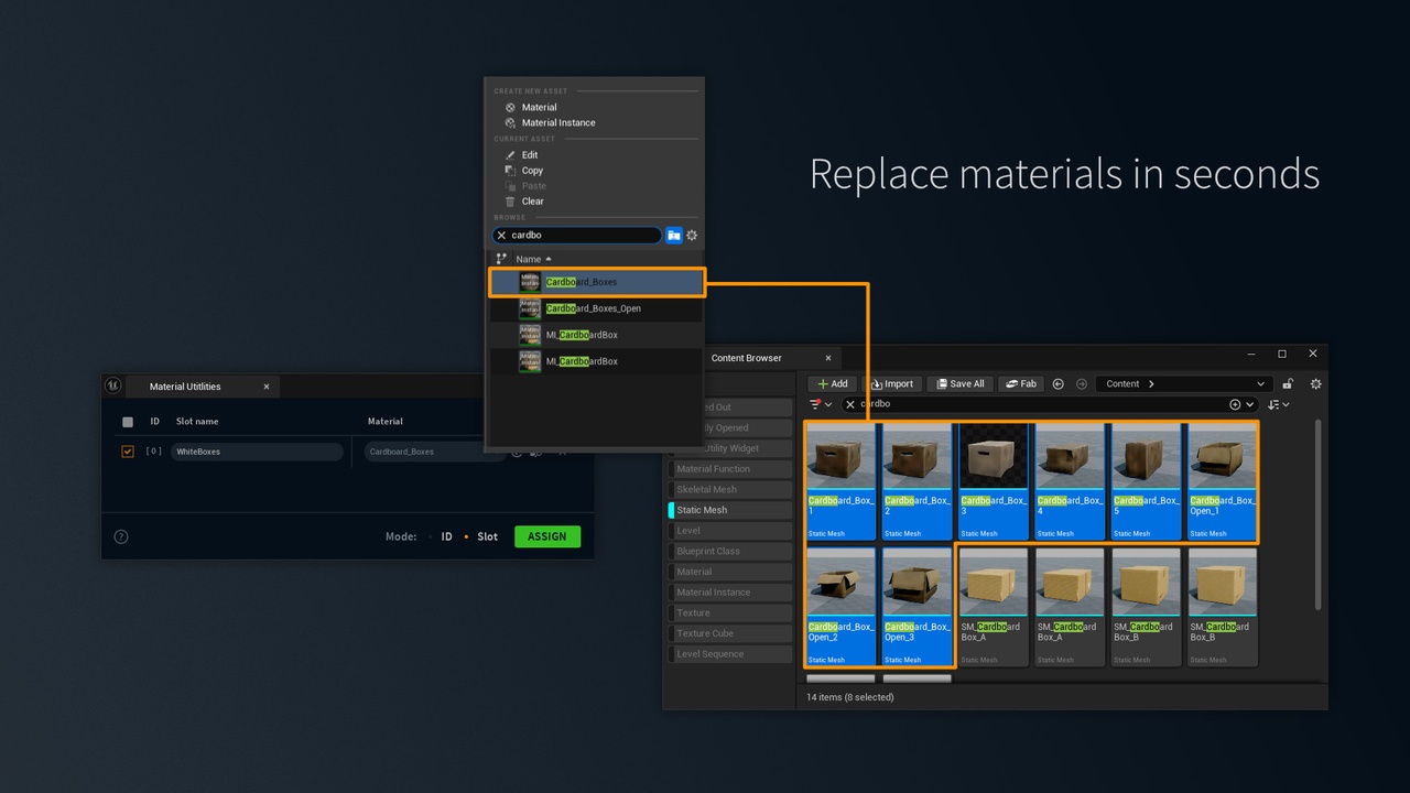 Speed up your Unreal Engine workflow with the Material Utilities plugin - perfect for quickly assigning materials to multiple meshes, especially when importing assets or cleaning up marketplace packs.